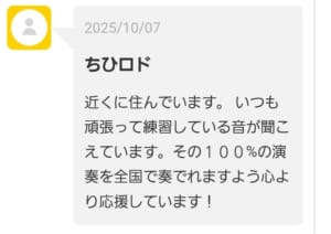 →ありがとうございます☺️応援してくれる皆さんの言葉を胸に最高の演奏を響かせたいです!