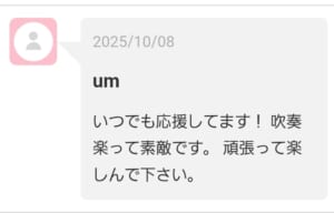 →応援ありがとうございます☺️吹奏楽って本当に素敵ですよね✨子供たちが楽しく演奏できるのも保護者会のサポートが大切と思っています。その礎を築いてくださり感謝しています!!