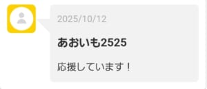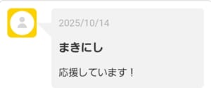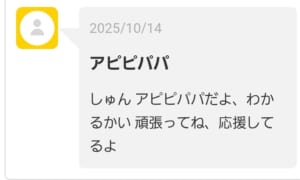 →応援ありがとうございます☺️しゅんさんに伝わります。たくさんの方のメッセージ、本当に原動力になっております!!