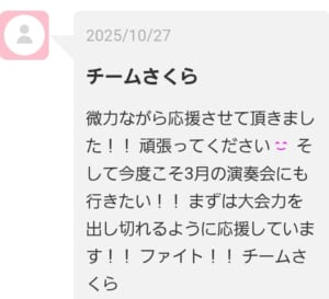 →応援ありがとうございます☺️さくらさん、毎年応援してくださり心から感謝しています🌸いろいろな人との繋がりで支えられていることを実感し胸がいっぱいです😢💕