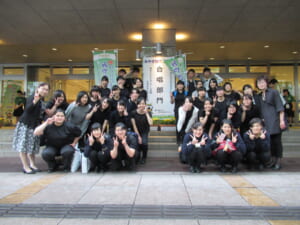 そこで音楽、歌の好きな生徒に声をかけ10人の生徒が集まり、何とか再スタートできました。1年間基礎練習を頑張ってくれたお陰で、2年目でコンクールに出場することができました。
