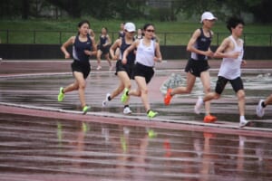 私たちは週に2回ほど、バスで白河市陸上競技場に移動し、強度の高い練習を行っています。