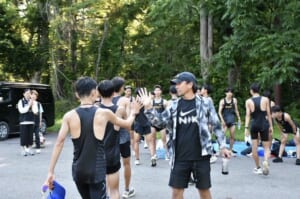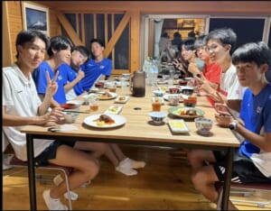 今年は北塩原村の桧原で4回の合宿を行いました。きつい練習も仲間同士で声をかけ合い、明るい雰囲気の中でメニューをこなすことができました。練習のあとは川でアイシングをしたり、おいしいご飯をみんなで食べたりしました!