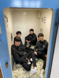 私たちはその調圧ルームに練習前や練習後に入ることで競技力の向上また、怪我予防にもつながっています!