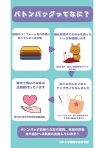 本校では、この新たな取り組みに学校パートとして参画し、2023年度より現在の形での江戸取バトンバッグプロジェクトを継続しています。
