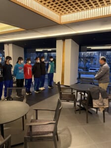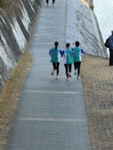 京都の宿舎到着後は、鴨川の河川敷にて、軽くジョグ。長旅の疲れを見せずに本番へ向けて、調整しました。