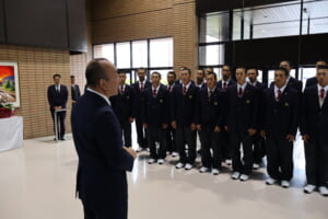 その後、麦倉監督より大会を終えての報告があり、最後に中村主将が選手団を代表して挨拶を行いました。