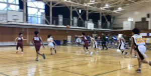 地域リーグ初戦は松戸市立六実中学校と試合をしました。序盤から両チーム厳しいディフェンスで一進一退の攻防が続きます。しかし、昭和学院の交代で入った1年生センターがゴール下で大活躍をし、徐々に点差が離れていきます。メンバー交代を繰り返しながらも流れは譲らず、前半を46-28で折り返します。後半も最初は2年生5人で始まりましたが、うちの武器は激しいディフェンスなんだからもっと失点にこだわること、速攻をしっかり出して決め切ろうといってコートに立ちました。3Q直後、61-34まで離れたところで2年生はお役御免です。1年生が残り時間今まで練習してきた成果を出し、無事78-54で勝つことができました!