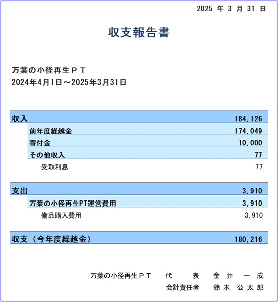 過年度も本プロジェクトを応援頂きありがとうございました。 2024年度における本プロジェクトの収支を報告させていただきます。ご報告が遅れまして申し訳ございません。 なお、2025年3月末をもってご寄付の受付を終了いたしました。たくさんのご支援を賜り心より感謝申し上げます。 引き続き、寄付金の使用状況やプロジェクトの活動状況は、本サイトにて随時報告させていただきます。 今後とも本プロジェクトにご注目いただきますようお願い申し上げます。