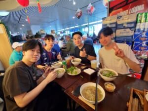 ベトナムのホーチミンで乗り換えの時にみんなでフォーを食べました。