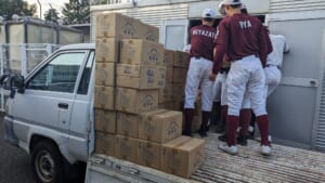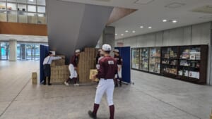 10/27(月)放課後、府中校防災備蓄品倉庫内からの賞味期限切れの備蓄保存水の入れ替え作業をお手伝いいたしました。水のペットボトルが入った重たい段ボールを一つずつ丁寧に運ぶ作業は、トレーニングになったばかりでなく、事務室スタッフの皆様にも喜んでいただくことができました。