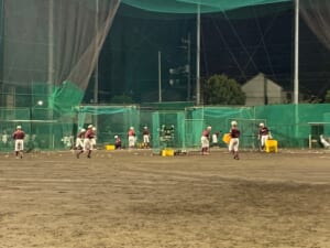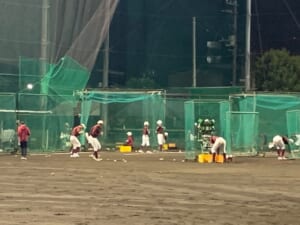 平日の練習時間は16:00~19:30。バットを多く振る時間を作るには、ボール拾いの時間を短くするしかありません。明星高等学校野球部では、ボール拾いは全員で、全力で行っています。