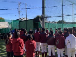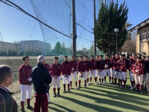 1月6日(火)より、2026年の活動が始動しました。永田監督およびスタッフから新年の挨拶があり、選手一同、決意を新たにしました。本日からインフィールドの土の入れ替え工事が始まったため、外野での守備練習およびトレーニングを行いました。自分に負けず、最後の一歩まで走りきることを大切にしながら、元気よく、明るく練習に取り組みました。