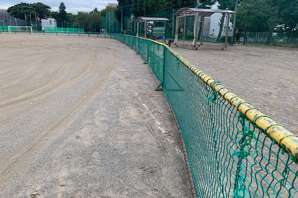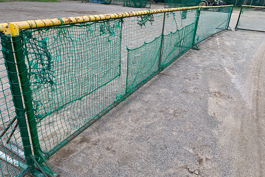 しかし、写真の通り現在使用している外野フェンスは既に30年以上経過しており、ネット部分には穴が開き、ペンキも剥げてきています。