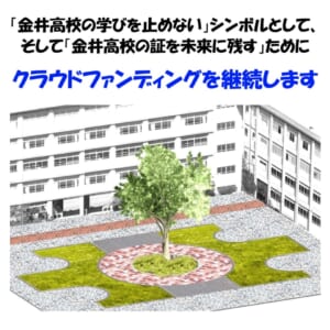前回のポストから時間が経ってしまいましたが、クラウドファンディングについては、今までの目的に、”「金井高校の学びを止めない」シンボルとして、そして「金井高校の証を未来に残す」ため”という新たな目的を加えて、継続することとしました。これは、たとえあと5年間であっても、「思い出の中庭に緑を取り戻し、在校生に癒しと憩いの場を!」という従来からの目標を達成することが、この新たな目標につながっていくものであることから、学校やPTAの皆さんとも話し合った上で決断したものです。