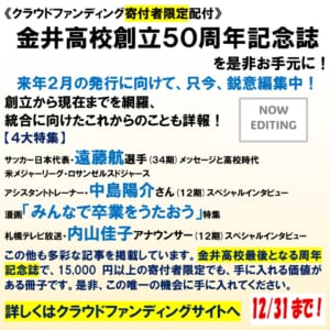 金井高校の創立50周年記念誌は来年2月の発行に向けて、只今、鋭意編集中です。