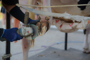削蹄師さんにお越しいただき、畜産科学科の生徒に講義をしながら削蹄をしていただきました!