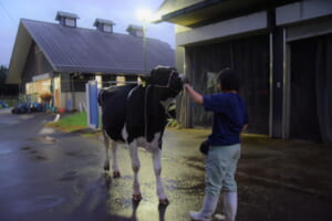 そして何より1番の魅力は牛と友達になれることです。入部前なんて私にこんなにも牛とともにある生活があるなんて思ってもいませんでした。でも入部してみて愛情を注げば注ぐほど、時間をかければかけるほど牛も私に寄り添ってくれる場面が沢山ありました。心が通じあっていると感じる場面があればあるほど私は牛という動物に魅力を感じ続けています。小さい頃アニメや映画で見ていたような「動物と友達!」というのはこのことなんだなと日々実感させられるばかりです。これが私の思う養牛部の魅力です。