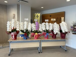 玄関は、たくさんの胡蝶蘭やお花に包まれ、とても華やかに彩られています🌸