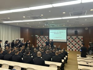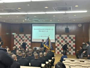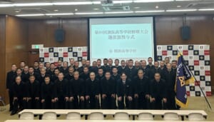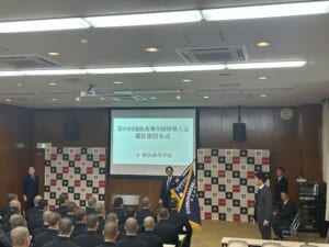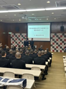 まずは毎日新聞社様より学校長にセンバツ旗が授与されました。