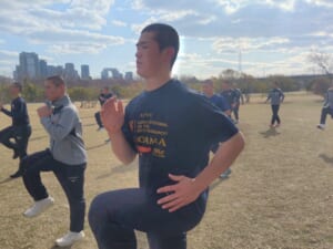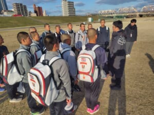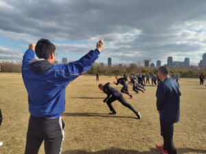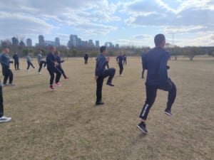 午後は少し体を動かす時間として、淀川の河川敷に向かい、汗を流しました。寒風吹きすさぶ中でしたが、半袖シャツで体を動かす姿にも驚かれる方もいるかもしれませんね。