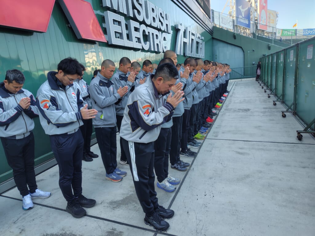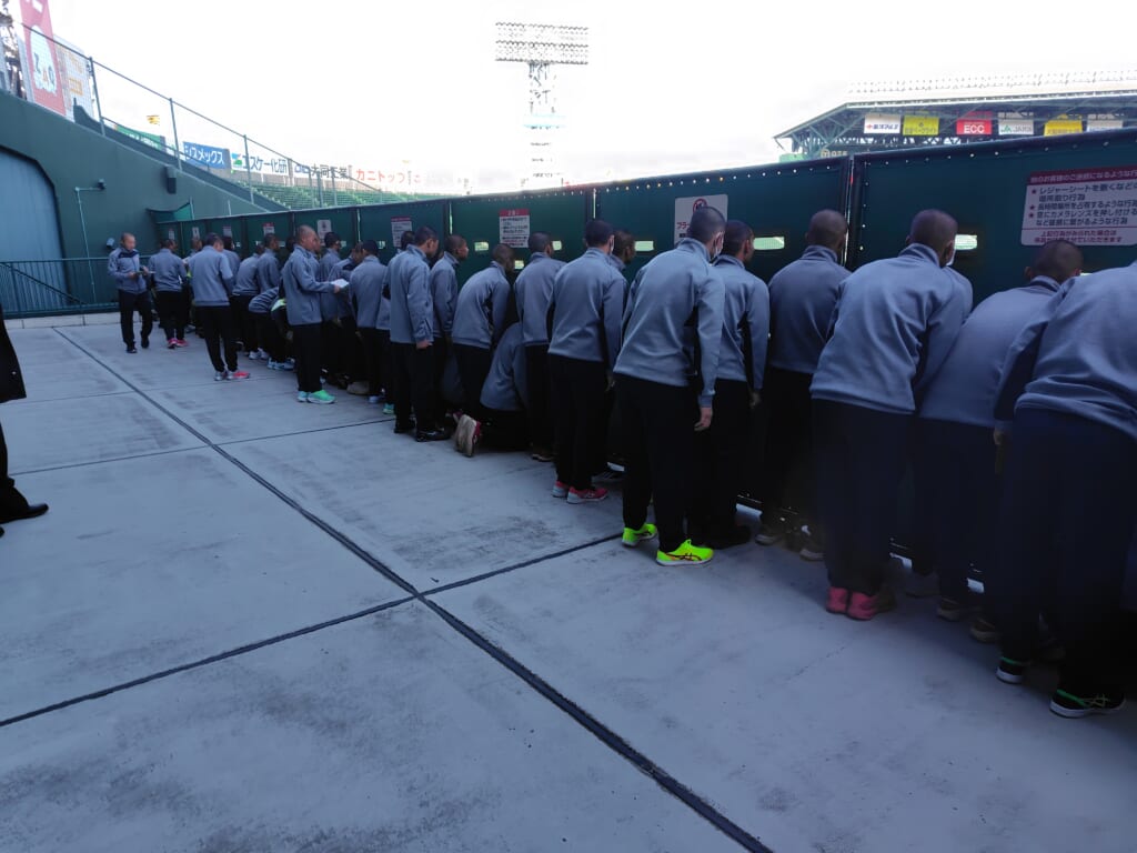 いよいよ甲子園球場・甲子園歴史館を訪れて、気持ちを高めて良い準備ができるよう、しっかりと向かう方向性を確かめました。今日は阪神タイガースのオープン戦があり、グラウンド内ではバッティング練習が行われておりました。
