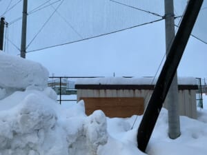 ソフトボール部の部室に使用しているプレハブが雪に埋もれました。