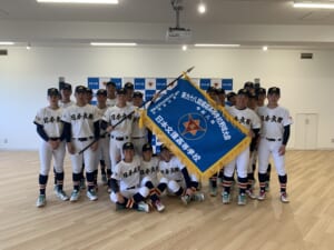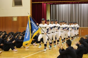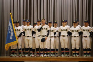 選抜旗授与式がおこなわれました。毎日新聞社新潟支局長杉尾様より選抜旗が授与され、「甲子園で思いっきり暴れてきてください」と熱い激励の言葉をいただきました!