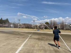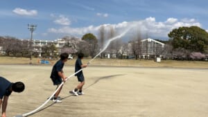 学校事務室のご尽力で数年ぶりに散水施設を直していただき、選手一同感動の場面を迎えました!