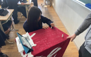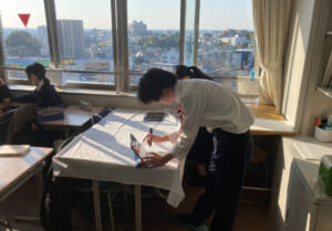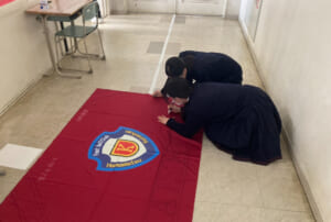 新たに25本の応援旗を作成し、その1枚1枚に全校生徒の応援メッセージを記入していただきました。