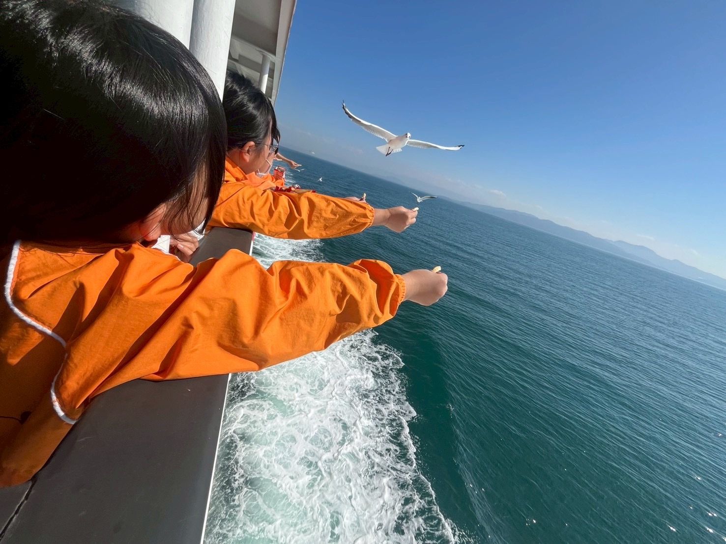 先にお弁当を食べて、甲板へ出るとカモメの姿が見えない…