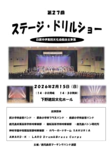 小学生から一般の部まで、たくさんの団体がステージドリルを披露し、