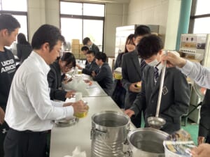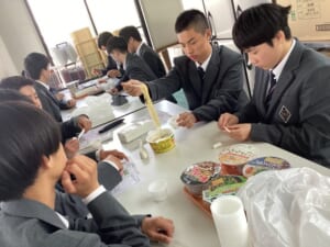 4月よりイトメン様にご来校いただき、この商品開発にともなう授業を何回もしていただきました。