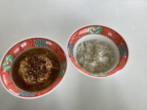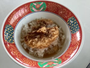 和風だしの中華麺に天ぷらのかき揚げが乗っており、天ぷらにソースをかけ、小ライスと一緒に食べるというユニークな食べ方で、卒業生の方の多くが「あの味が忘れられない」と語っています。