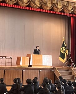 3月19日(木)全校での修了式後、「全国私立高等学校男女バレーボール選手権大会」の出場壮行会を行っていただきました。