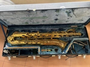 40年以上前に製造されたバリトンサックスです。修理には10万円かかりました。