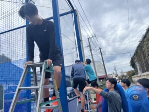 僕たちは、約1ヶ月前から、大会に向けていろいろなことを行いました。部活が終わったらすぐにバナーを取り付けたり、100脚以上の椅子の準備、上りの準備、スポンサーブースの設営などみんなで協力して行いました‼️