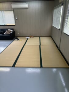 ↑久留米市ユー・エス・イーカップ国際女子テニスの選手ラウンジの畳(左) 当大会の選手ラウンジの畳(中央)留米市ユー・エス・イーカップ国際女子テニスでの集合写真(右)