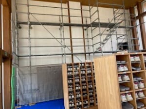 まず最初に、安全に、そして丁寧に制作できるよう、PICFAの皆さまや足場業者の方と、足場の作り方について念入りに打ち合わせを行いました。