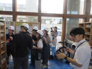 同日の午後には、九州大学アクセシビリティ・ピアサポーターの皆さんや、九州大学の先生方も壁画制作に参加してくださいました。