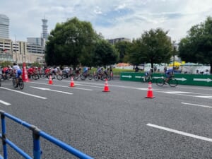 毎年恒例の大分サイクルフェス。JR大分駅前を封鎖して自転車のレースをするというビッグイベントです。関連イベントでクリテリウム甲子園が開催され、佐賀県代表として出場しました。プロのレースの前に、九州勢をメインに中四国の高校生らがスピードを競いました。