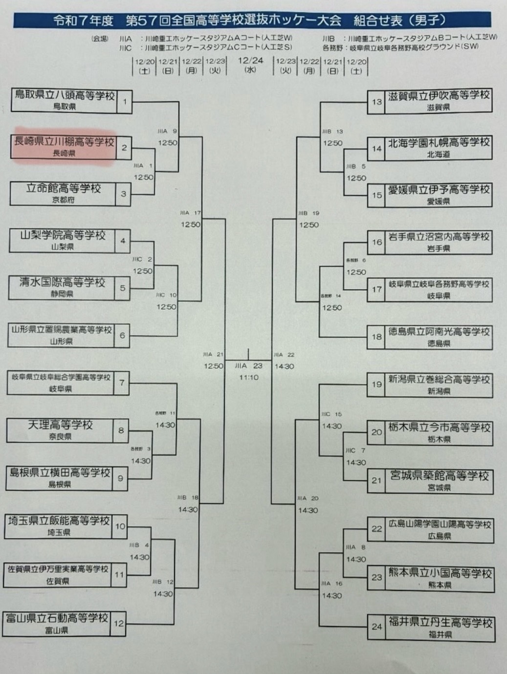 開催日程は12月20日〜24日、第1回戦は12月20日(土)、立命館高校さんと対戦います。第2回戦は12月21日(日)、八頭高校さんとの対戦になります。