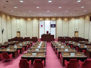5分ほどで議事堂に到着。重い扉を開け一礼し、議場に入った瞬間…感じる独特な重厚感や匂い、高い天井や赤い絨毯…教室の賑やかさからはかけ離れたただならぬ雰囲気に緊張感が走りました。