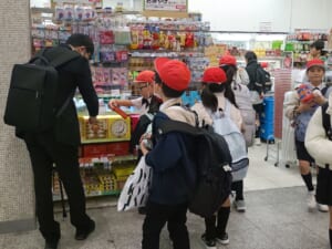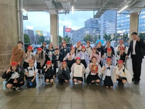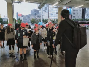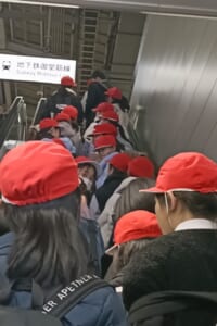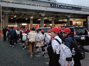 新大阪駅の人混みの中を、先生を先頭にトレードマーク『赤白帽子』の子ども達が列になって進む姿はまるで大名行列のよう…