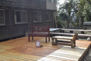 ↑27期生が卒業制作として、みかん校舎の横にウッドデッキをつくってくれました。