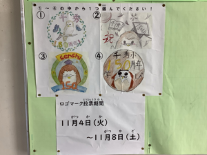 そんな中、クラウドファンディングに合わせて、6年生が考案している150周年ロゴマークのアンケートも行わせていただきました。写真の4つのロゴマーク候補から地域の方々にも一つ選んで投票していただきました。皆さん口を揃えて「どのマークも素敵で選べないな」などとありがたい言葉をいただきました。この後、校内でも子ども達や保護者の方々に投票を行う予定です。決定しましたら、こちらを利用してお知らせしたいと思います。ぜひ、楽しみにしていてください!