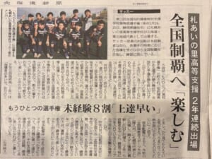 生徒たちにとって、記者さんから取材を受ける経験は貴重。この記事を見て札幌あいの里サッカー部を知ってくださる方も増えています。「もうひとつの高校選手権」という舞台があること、それを目標にがんばっている生徒がいることを少しでも多くの方に知って頂きたいと願っていたので、本当に嬉しいです!